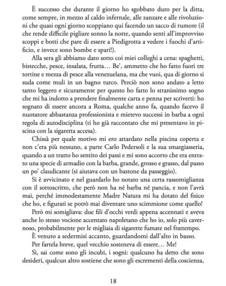 Bud Spencer – al secolo Carlo Pedersoli – racconta le sue cento vite attraverso numerosi aneddoti: dai record come nuotatore (è stato il primo italiano a scendere sotto il minuto nei 100 metri stile libero) al pugilato, dal rugby alla passione per gli elicotteri, dalla costruzione della strada Panamericana come operaio alle gare come pilota per l’Alfa Romeo a Caracas. In una lettera scritta a sua moglie nel 1959, Bud racconta di uno strano sogno che ha fatto: è in piscina e ha da poco terminato l’allenamento. Si attarda in acqua e rimane solo, quando sente entrare qualcuno: un uomo grande e grosso, con la barba, dal passo un po’ claudicante. È lui a ottant’anni! Gli racconta quella che sarebbe stata la sua vita, dal Sud America all’enorme successo al cinema. Lui, incredulo, ride...