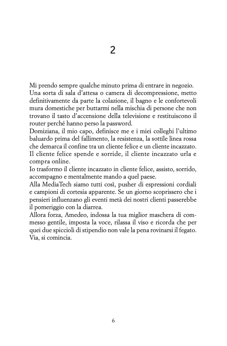 Un amore passato che non passa mai, le giornate che scorrono tra un reparto di elettronica che sembra la caricatura del mondo reale e la vita con sua sorella, Diana, che è presente in un modo tutto suo.